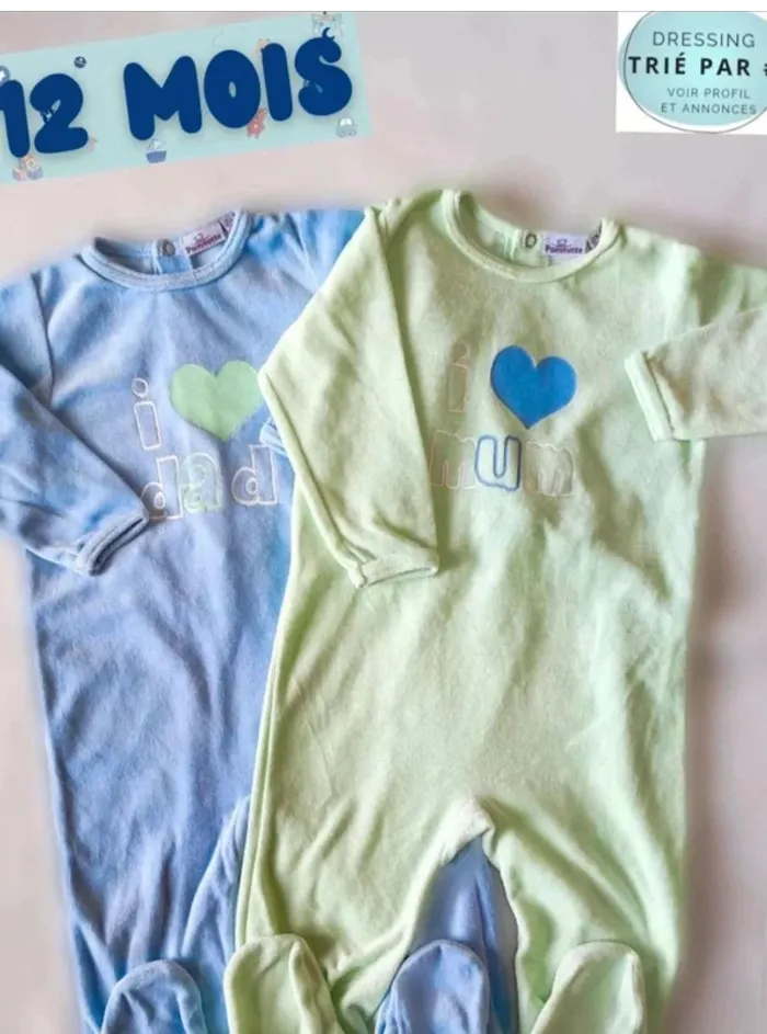 Lot 2  pyjama  velours  love  maman papa 12  mois