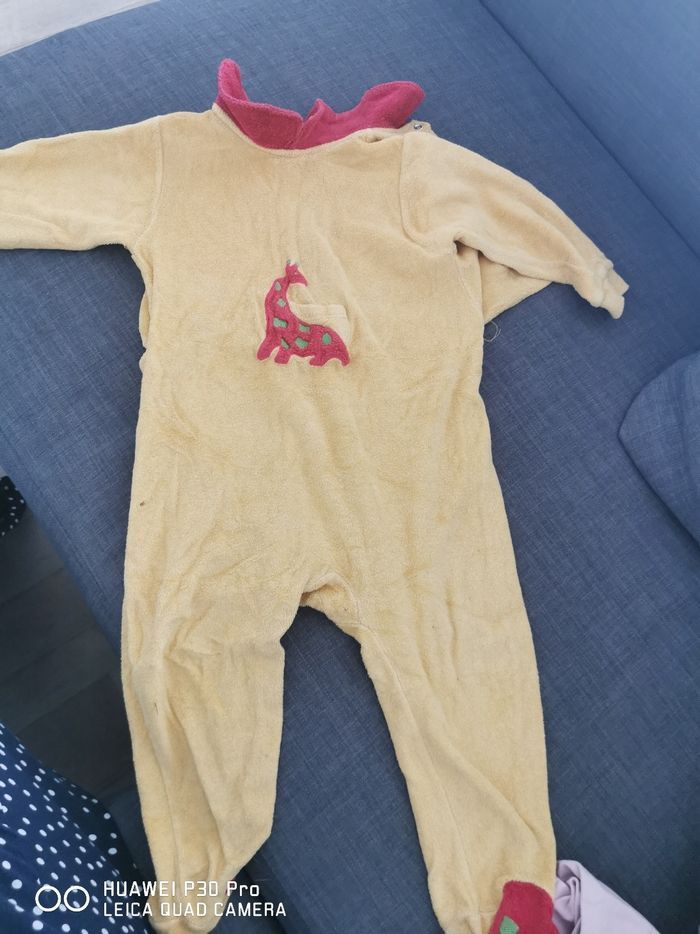 Pyjama qui présente de l'usure mais qui n'empêche en rien l'utilisation.