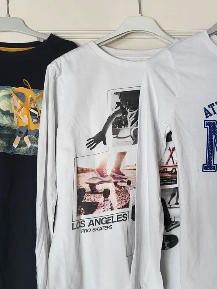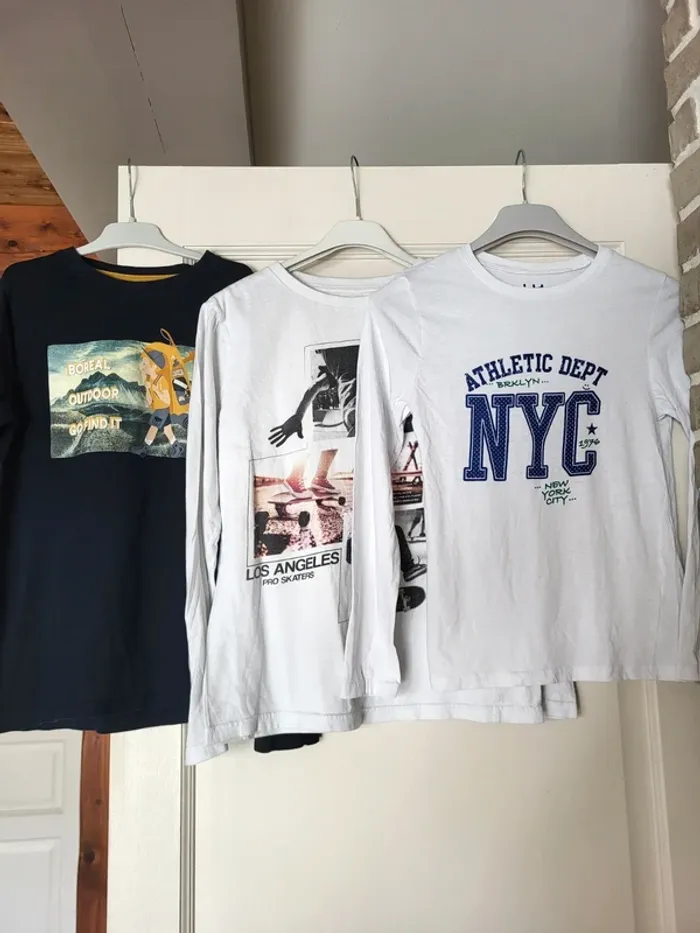 ⭐️ Nombreux articles enfants dans mon dressing avec réductions sur les lots ✨️ 🛍 Lot de 3 t-shirt à manches longues 👕 Un t-shirt Kiabi en parfait état Bleu marine avec un imprimé randonnée 👕 Un t-shirt Kiabi en bon état Blanc avec un imprimé skate 👕 Un t-shirt La Halle en parfait état Blanc avec un imprimé athletic NYC 👦 Taille 12 ans, 144 / 155 cm