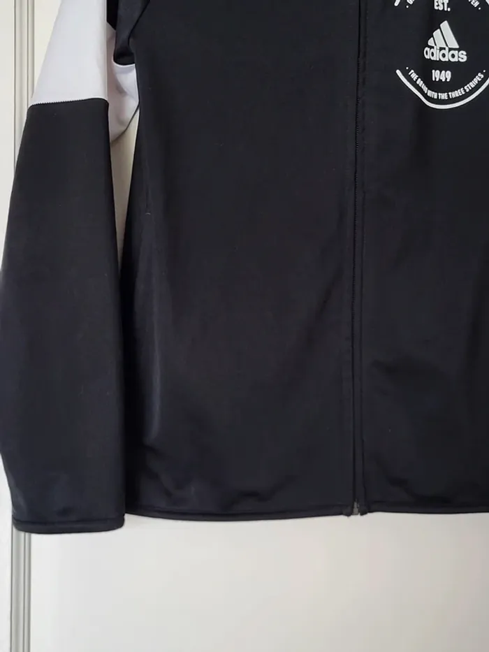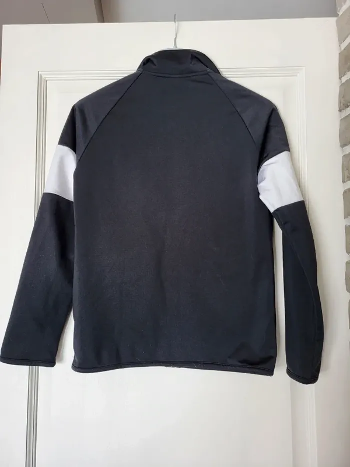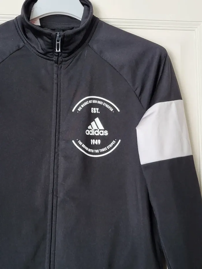 ⭐️ Nombreux articles enfants dans mon dressing avec réductions sur les lots ✨️ 👕 Veste de sport zippée Adidas en très bon état, sans défaut Noir avec empiècements blancs aux manches et flocage à la poitrine 2 poches Confortable pour le.sport ou la vie quotidienne 👦 Taille 11 / 12 ans - 152 cm