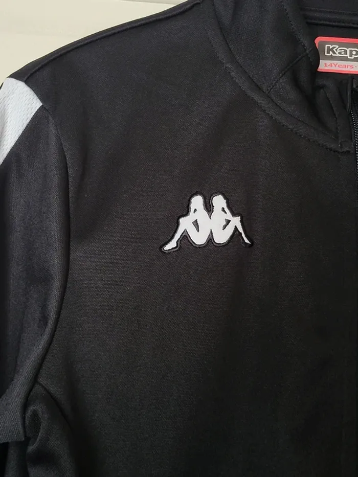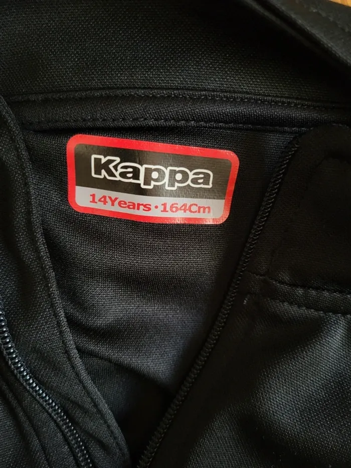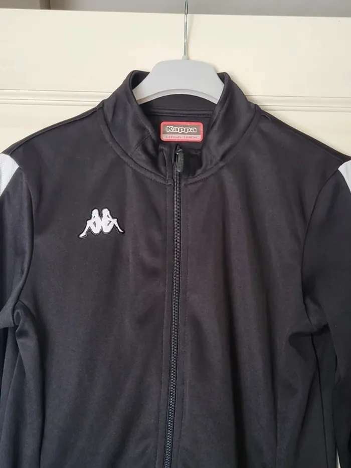 ⭐️ Nombreux articles enfants dans mon dressing avec réductions sur les lots ✨️ 👕 Veste zippée Kappa en très bon état Noire avec des bandes blanches sur les manches Petit col montant, 2 poches zippées, logo brodée à la poitrine ⚽️ Pour le sport ou la vie quotidienne 👦 Taille 14 ans, 164 cm