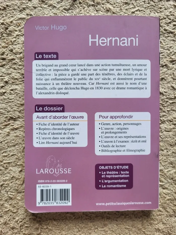⭐️ Nombreux livres dans mon dressing réductions sur les lots activées ✨️ 📚 Livre " Hernani" de Victor Hugo Collection Petits Classiques des éditions Larousse 📕 Excellent état 📖 Texte intégral + dossier pédagogique avant d'aborder l'œuvre / pour approfondir