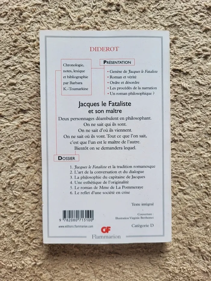 ⭐️ Nombreux livres dans mon dressing réductions sur les lots activées ✨️ 📚 Livre "Jacques le Fataliste et son maître" de Diderot Édition avec dossier pédagogique 📕 Excellent état 📖 L'œuvre intégrale avec présentation et dossier