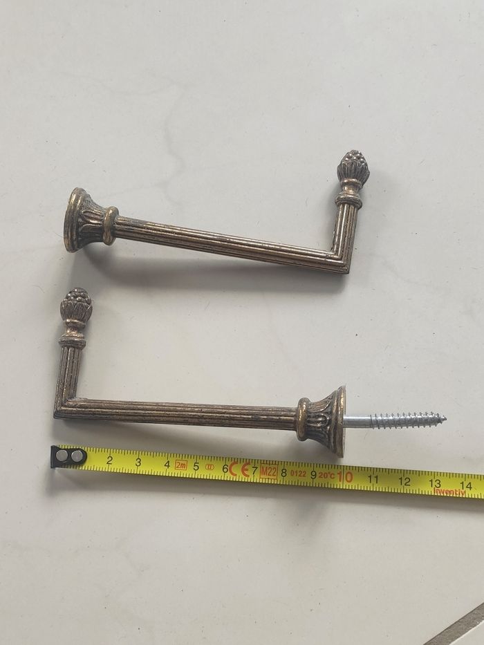 Lot de 2 crochets embrasse, en laiton doré. Crochets à rideaux.