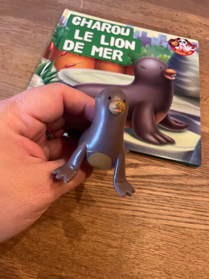 Livre collection Les animaux du zoo Charou le lion de mer avec une figurine lion de mer