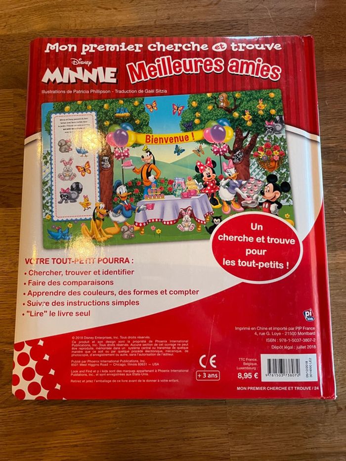 Livre Mon premier Cherche et trouve Disney Minnie Meilleurs amies Livre d’occasion en très bon état Voir photos #livresLDBB #livreschercheettrouveLDBB #Kididoc #nathan #livreenfant #livresenfants #imagier #enfant #enfants #livre #livres #BD #bandedessinée #cassidy #coeurdecerise #cerise #cathycassidy #fleurus #imagerie #limagerie #ptitgarcon #ptitefille #ptitloup #miniloup #milan #disney #tchoupi #geronimo #tea #stilton #lagrandeimagerie #janod #djeco #juniors #peppapig #peppa #questionsreponses #disney #franceloisir #franceloisirs #mamie #poule #raconte #mamiepoule #toto #caillou #babar #bibliotheque #clubdescinq #club #cinq #kinra #altaya