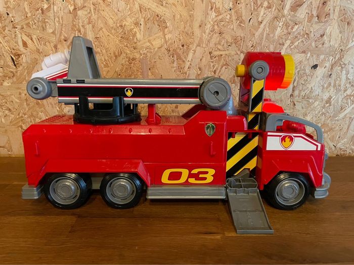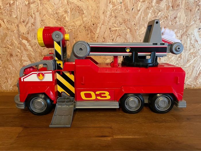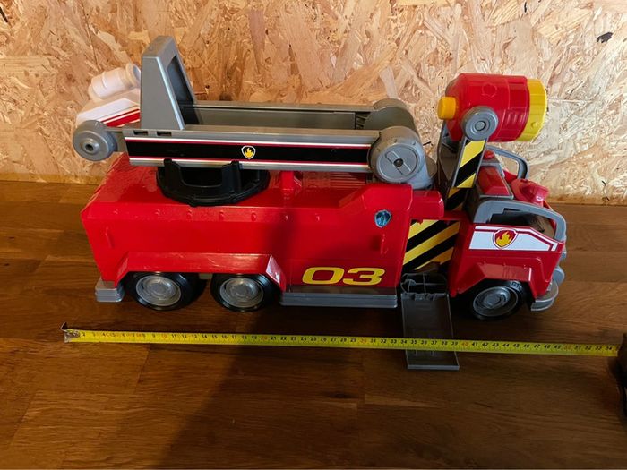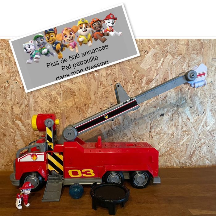 Camion géant interactif Camion de pompier transformable avec Marcus sonore et lumineux Camion d’environ 50 cm Avec 1 projectile en forme de boule à eau et 1 trampoline et 1 figurine Marcus Jouet d’occasion en TBE general Voir photos #patpatrouilleLDBB * VÉHICULE GÉANT INTERACTIF 50 CM - Le véhicule camion de pompiers Pat Patrouille est doté de transformations épiques ainsi que d'un lance-projectile. La figurine Marcus Pat Patrouille est incluse et l'ensemble contient 1 seul projectile * ÉCHELLE PIVOTANTE À 360 DEGRÉS - L'échelle du Camion de Pompiers Transformable de Marcus pivote à 360 degrés et se déploie plus haut que les échelles des autres voitures jouets de la Pat'Patrouille : atteignez les plus hauts bâtiments pour vos sauvetages * CANON À EAU ET TRAMPOLINE - Pour activer l'énorme canon à eau et éliminer les obstacles, appuyez sur le bouton à l'intérieur du camion, puis chargez un projectile et pressez le bouton * EFFETS SONORES ET LUMINEUX - Le camion de pompiers transformable de Marcus possède des effets sonores et lumineux réalistes issus du film lorsqu'on appuie sur les boutons sur la cabine (3 piles LR44 encore fonctionnel ). Ce jouet est idéal pour revivre des missions palpitantes de la Pat' Patrouille * À partir de 3 ans Jouet Paw Patrol Spin Master Numéro de série : 10301AKS #patpatrouilleLDBB 💐🌷🌸 NOUVEAUTÉ COMPTES PRO : VOUS POUVEZ DÉSORMAIS CRÉE VOUS MÊME VOTRE LOT 🎉 🥳 🍾 #patpatrouille #pawpatrol #spinmaster #nickelodeon #chase #marcus #ruben #stella #zuma #rocky #everest #tracker #liberty #ella #tuck #chienrobot #capitaineturbo #goodway #hellinger #marshall #pups #mighty #rex #ryder #capitaineturbot #gallinetta #jake #hollinger #yumi #maurice #dinorescue #missioncruiser #tourdecontrole #apollo #twins #jumeaux #patpatrouilleur #rescue #jumeaux #patroller #truemetal #true #coral #aquapups #aqua #sweetie #apollo #galinetta Jouet d’occasion présente donc forcément des traces d’utilisation
