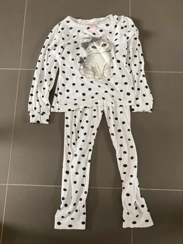 Pyjama chat 6-8 ans h&m petit trou qui ne se voit quasi pas voir photo #chouppette62fille6ans #chouppette62fille7ans #chouppette62fille8ans