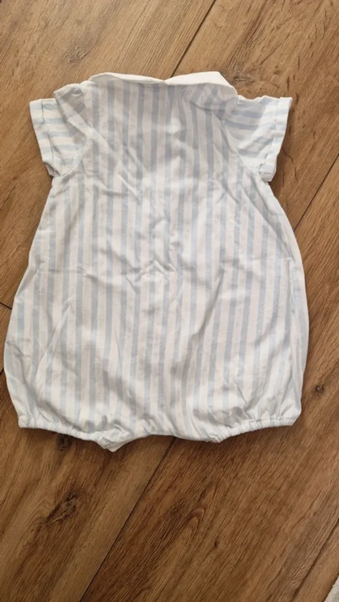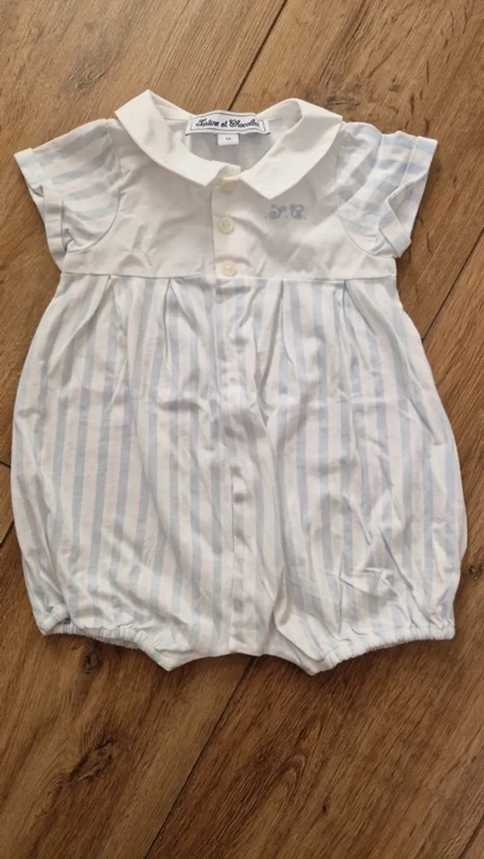 Barboteuse Tartine et chocolat, rayée bleu ciel et blanc. Portée 1 fois, très bon état.
