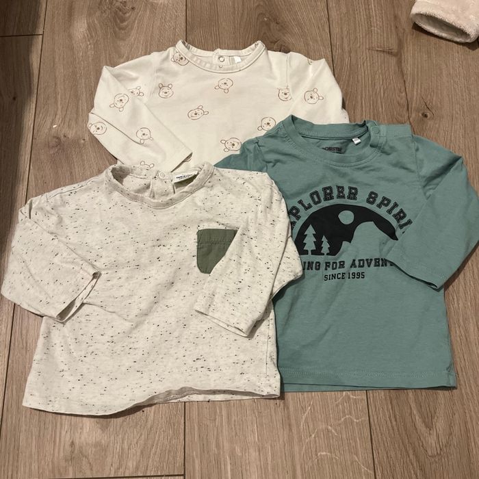 TEE shirt manche longue Taille 6 mois et le vert en 9 mois ⚠️ Marque : orchestra / kiabi Porté quelques fois juste le Winnie léger taches voir photo