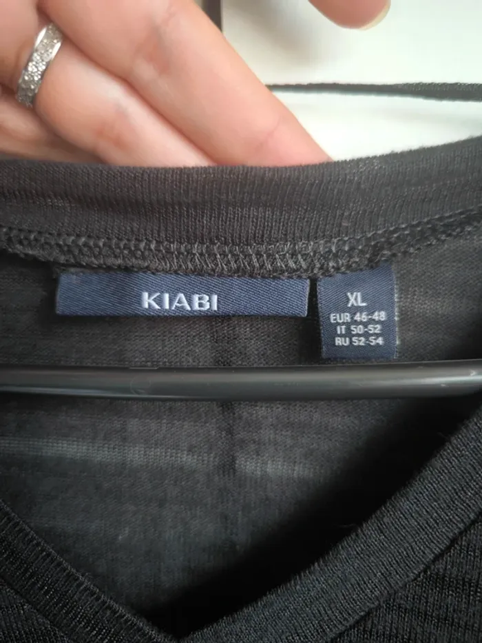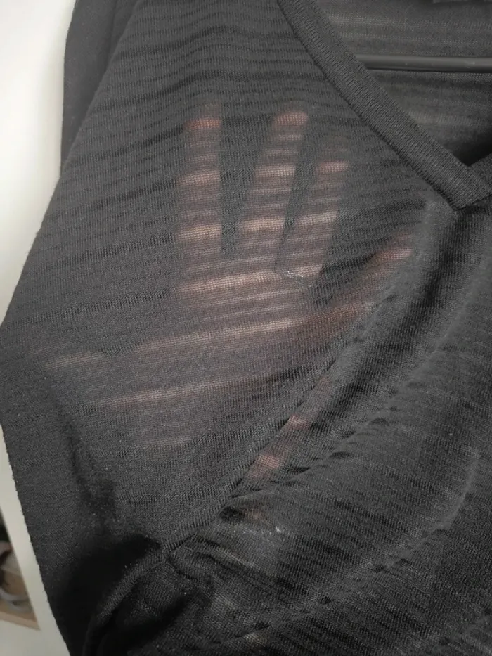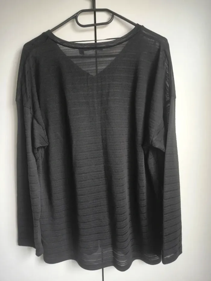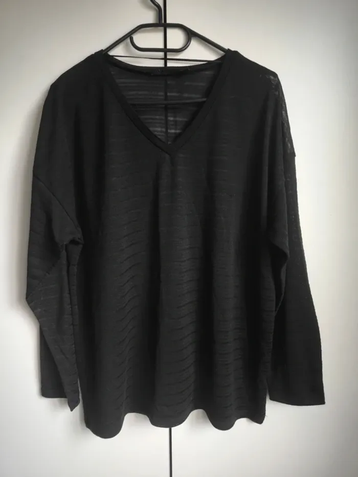 Pull col en V, très fin, rayé noir, transparent. Taille XL