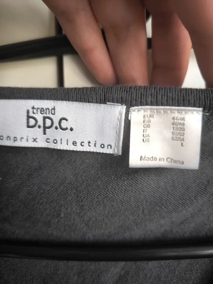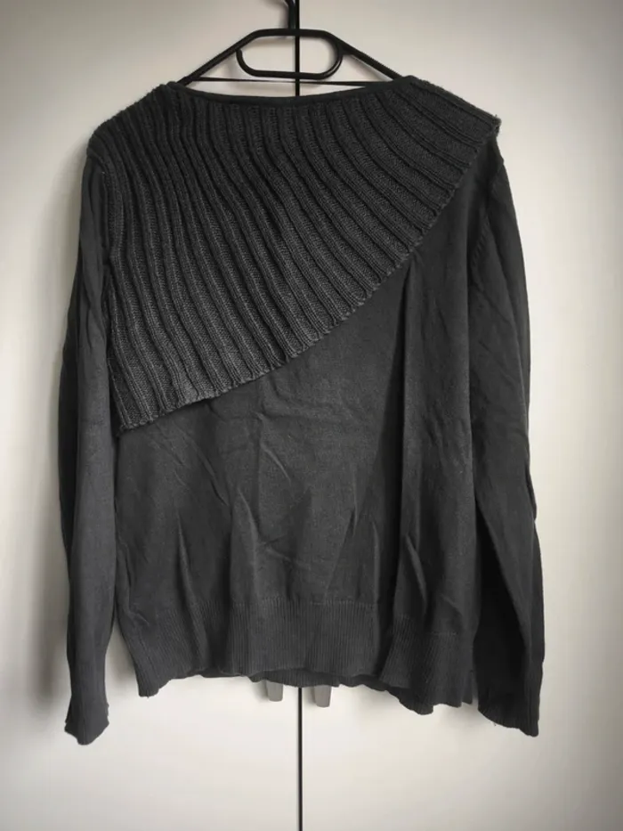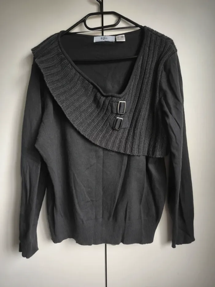 Pull gris anthracite avec rabat affet laine et boucles metalique. Taille 46