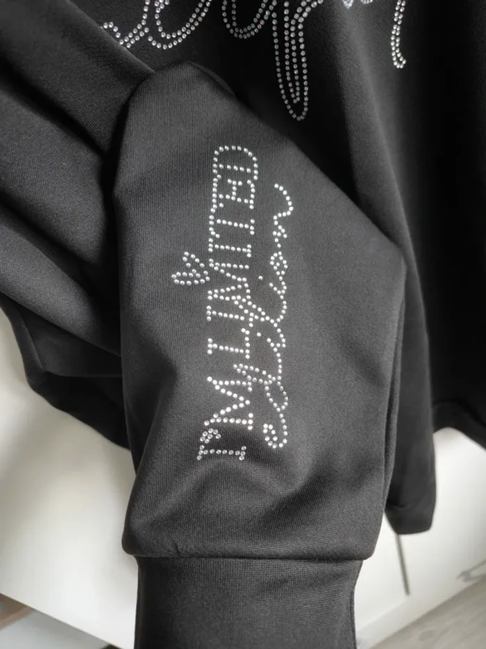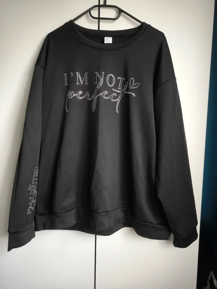 Pull noir avec strass " I'm not perfect " sur le devant et " I'm limited edition " sur la manche. Taille 3XL
