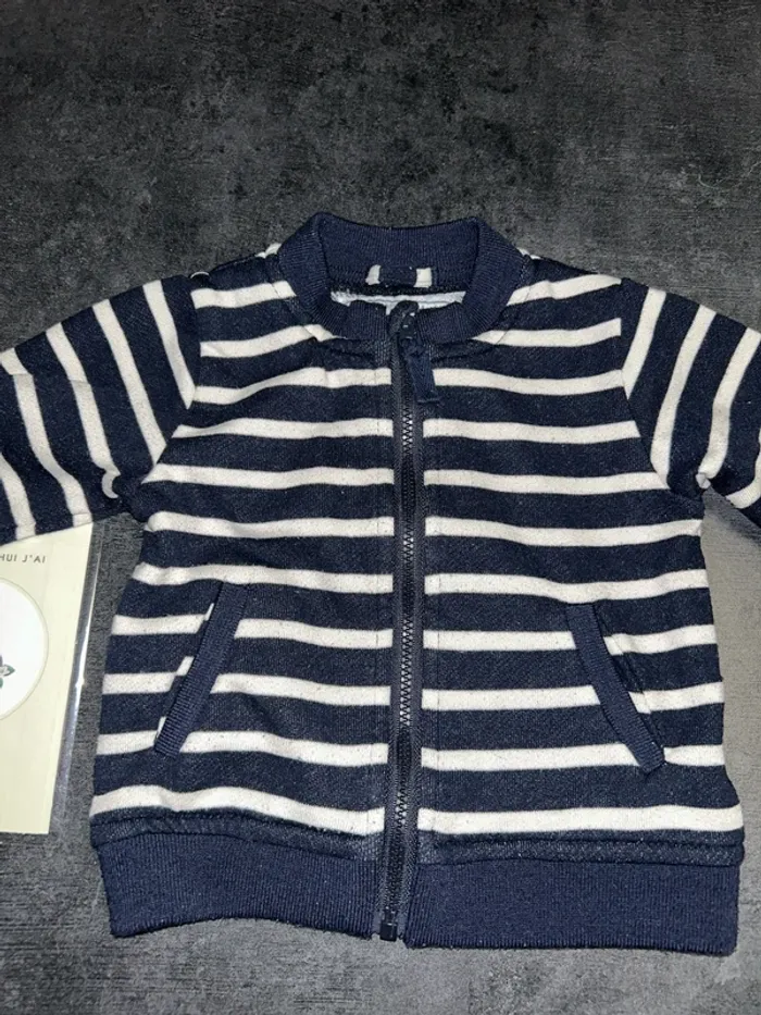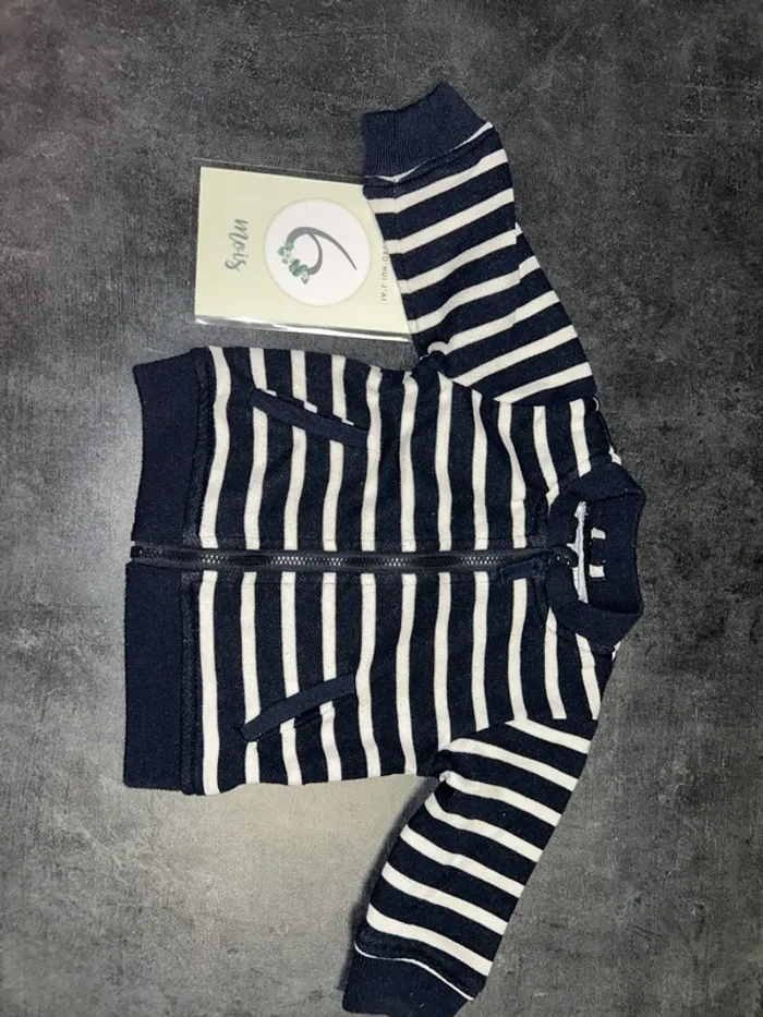 Veste a rayures Couleur blanche et bleu marine Fermeture éclaire Taille : 6 mois/ 67 cm