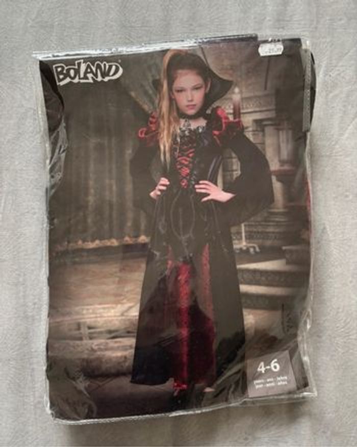 4/6 ans Porté une fois pour Halloween 2023, déguisement complet qui inclu la robe avec le col derrière ainsi que le collier qui se scratche au col (si besoin n'hésitez pas à m'envoyer un message pour avoir des photos) Prix neuf acheté 29,99e