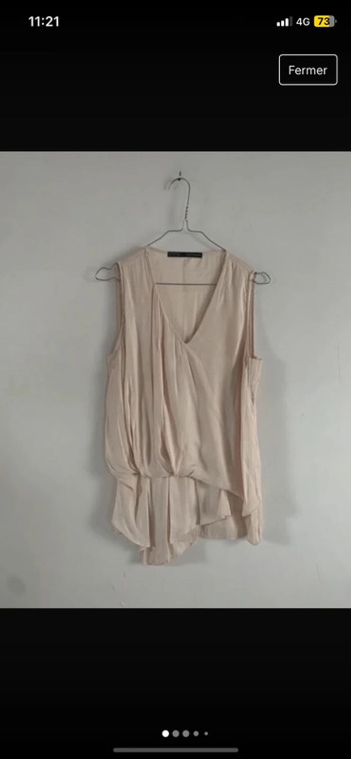 Blouse de la marque Zara , taille XS en très bon état mais légère usure voir dernière photo Ps: les lots ne sont pas activer sur les compte professionnel, si plusieurs articles vous intéresse vous pouvais directement me contacter 😇) #okafemmehauts #okafemmetaillexs #okafemme