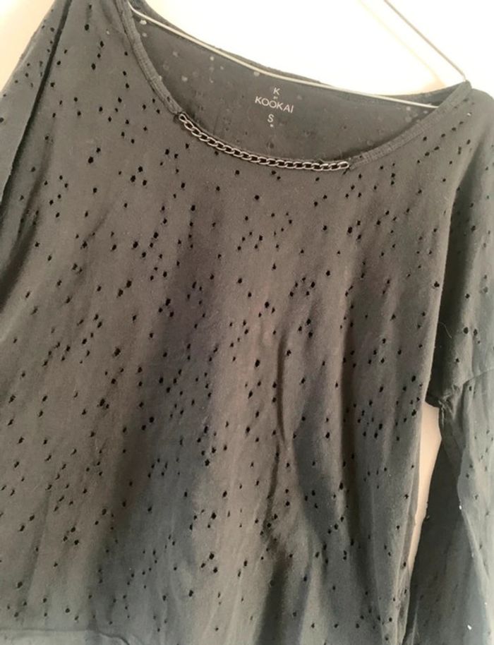 T-shirt effet trouée , de la marque kookai , taille S en très bon état Ps: les lots ne sont pas activer sur les compte professionnel, si plusieurs articles vous intéresse vous pouvais directement me contacter 😇) #okafemme #okafemmetailles #okafemmehauts