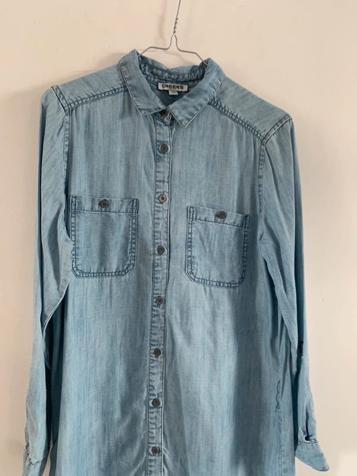 Robe chemise en jean de la marque creeks , en très bon état , taille 38 Ps: les lots ne sont pas activer sur les compte professionnel, si plusieurs articles vous intéresse vous pouvais directement me contacter 😇) #okafemme #okafemmetaillem #okafemmerobe