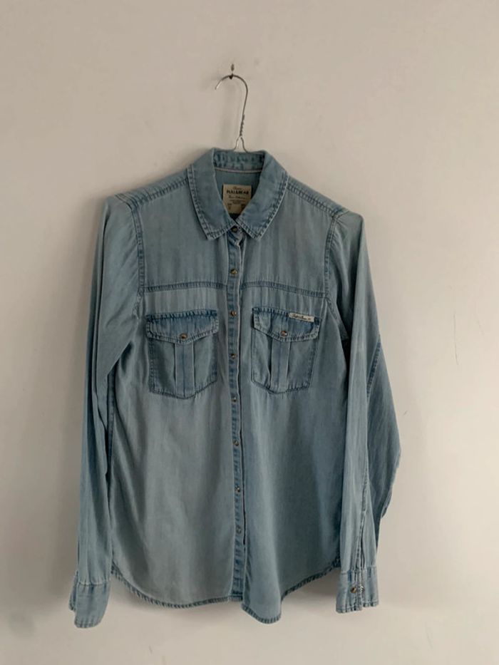 Chemise en jean de la marque pull&bear En très bon état , taille S Ps: les lots ne sont pas activer sur les compte professionnel, si plusieurs articles vous intéresse vous pouvais directement me contacter 😇) #okafemme #okafemmetailles #okafemmehauts