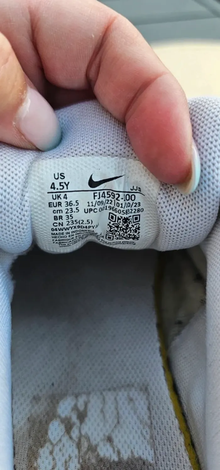 Etat satisfaisant Les couleurs sont partis a la machine Les lacets ne sont pas identique car ma fille a changé un seul car fluorescent et jai perdu le 2eme authentique Pointure 36.5 Petit prix pour une seconde vie
