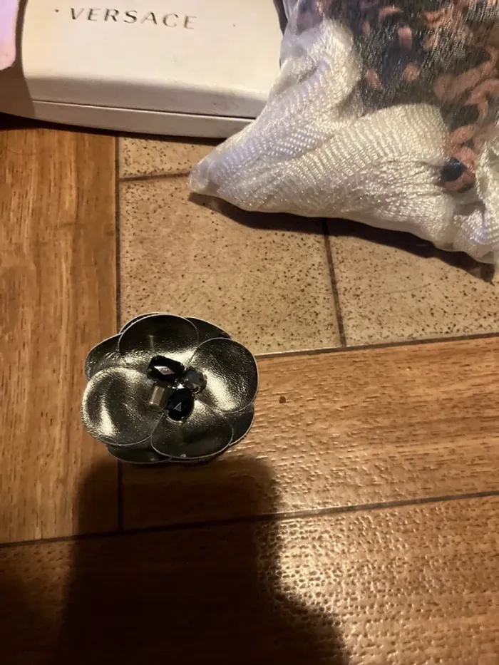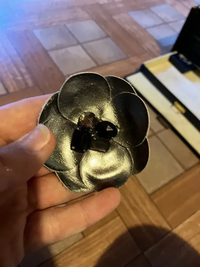 Broche grise avec strass noir