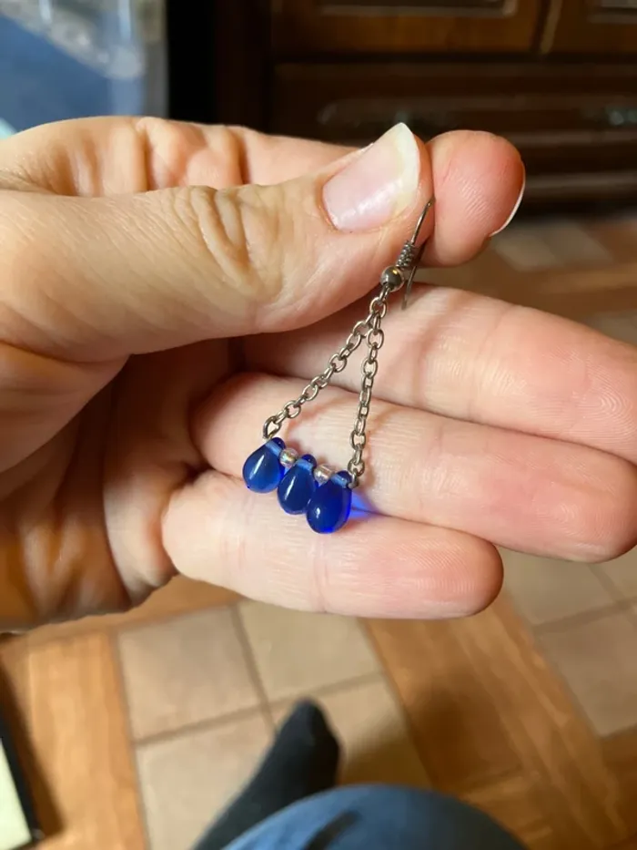Boucle d’oreille fantaisie bleu - photo numéro 1
