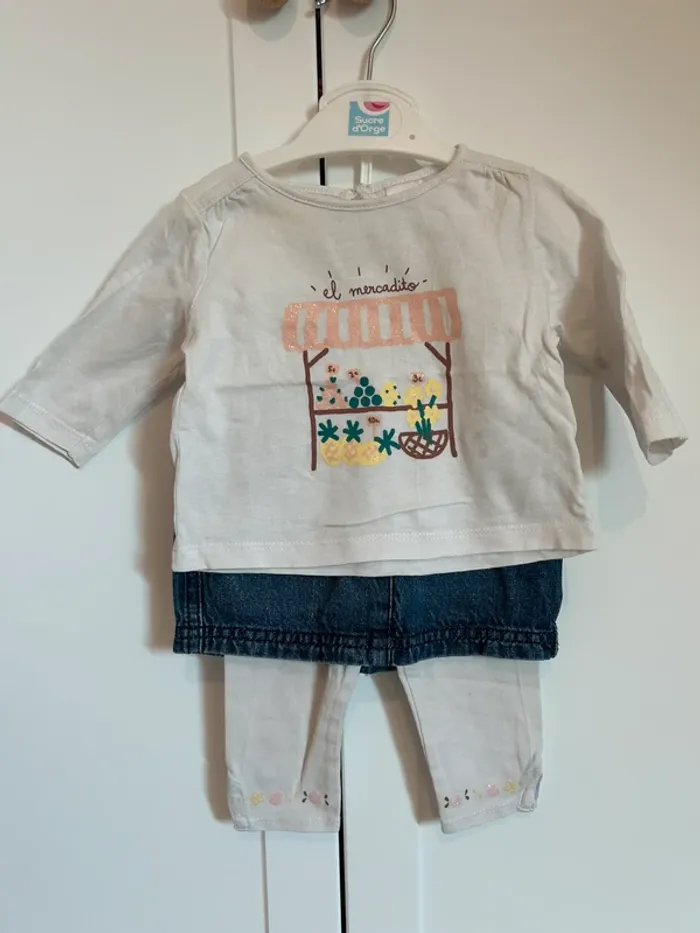 Legging motif fleur, jupe en jean, tee shirt manche longue « el Mercadito » Marque tex et sergent major #claumalo3mois