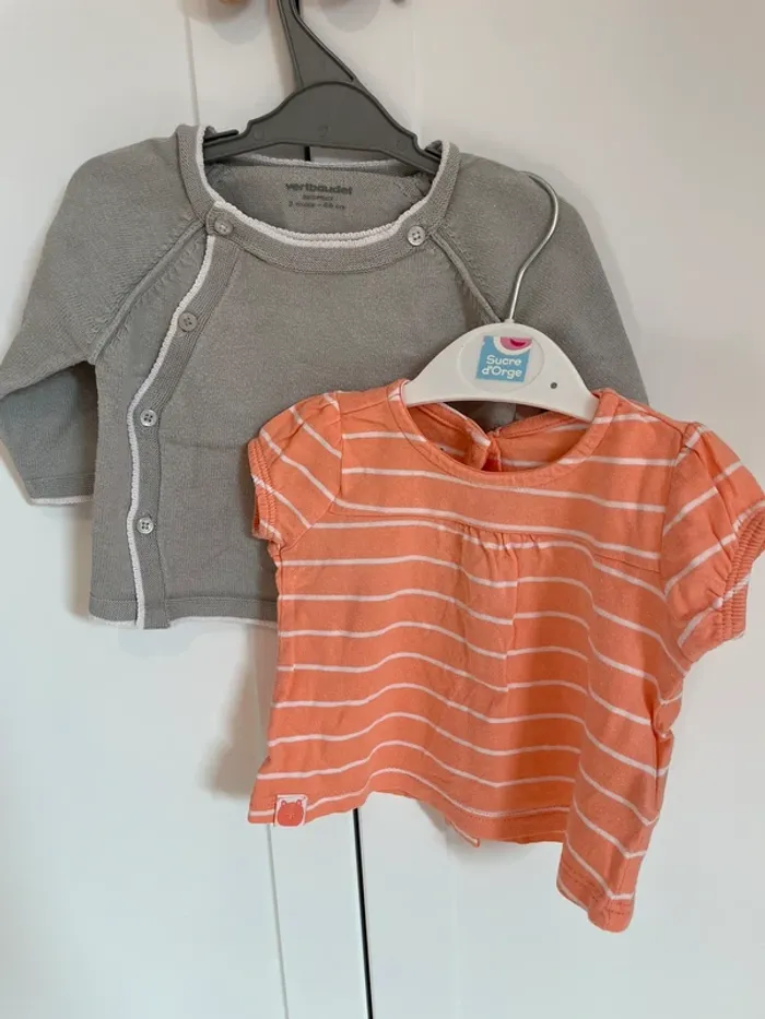 Tee shirt rayé et gilet avec ouverture sur le côté