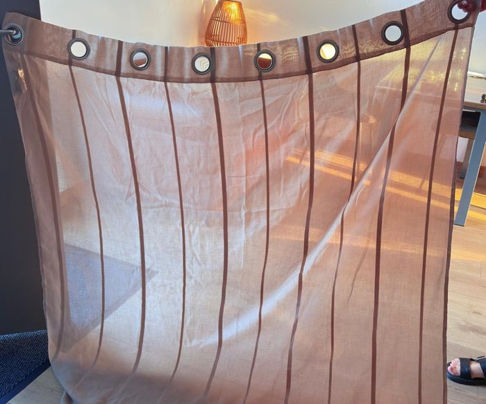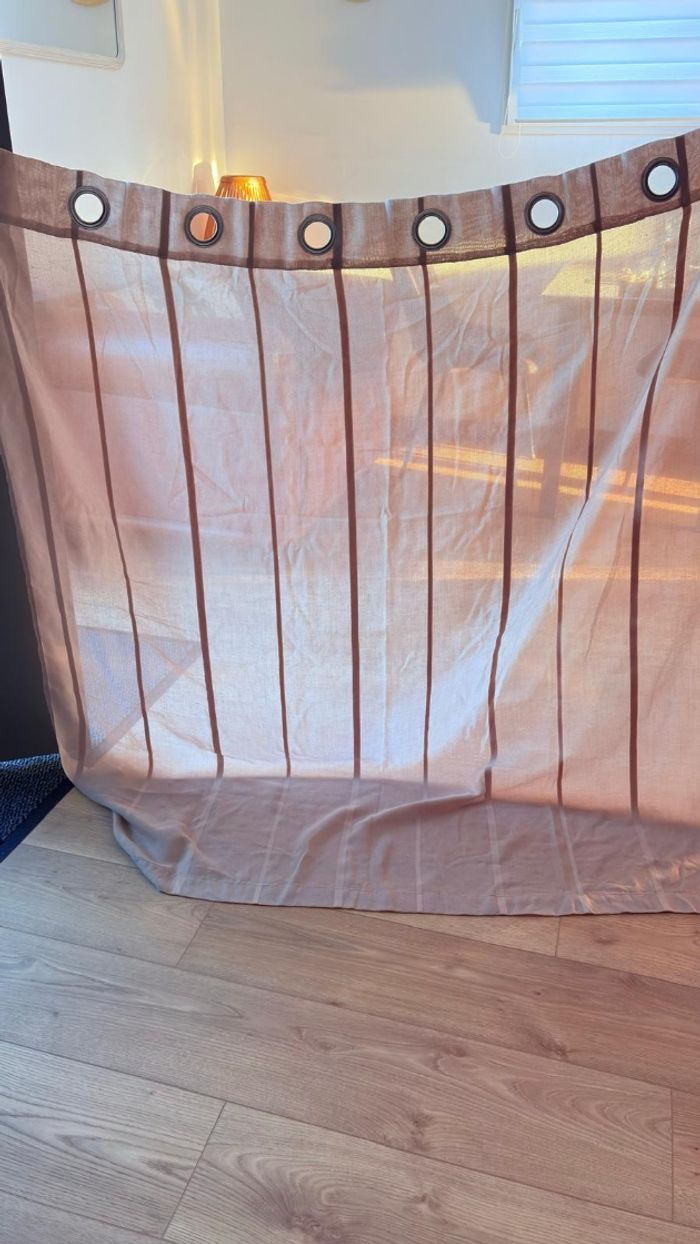 Vends un rideau 1 voilage 140x 143hauteur rayures ton sur ton Couleur taupe Avec une embrassé