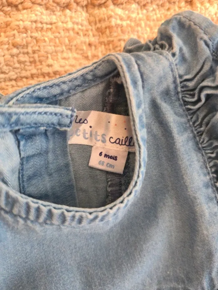 Blouse en jean, portée une fois. Marque : Mes Petits Cailloux Taille : 6 mois Pour voir mes autres vêtements en 6 mois ⏩️ #6moiscyse ✅️ Mon dressing est trié, n'hésitez pas à aller voir sur mon profil. 📪 Envoi par Mondial Relais svp, merci. 👗 D'autres vêtements femme XS à M, chaussures 39 et 40 et accessoires. 👶🏼 Vêtements bébé/enfants de 3 à 36 mois, chaussures et accessoires 🧸 Jouets 📚 Livres