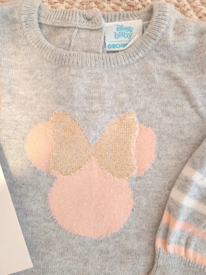 Robe-pull Disney Minnie gris rose et doré 6 mois Orchestra - photo numéro 1