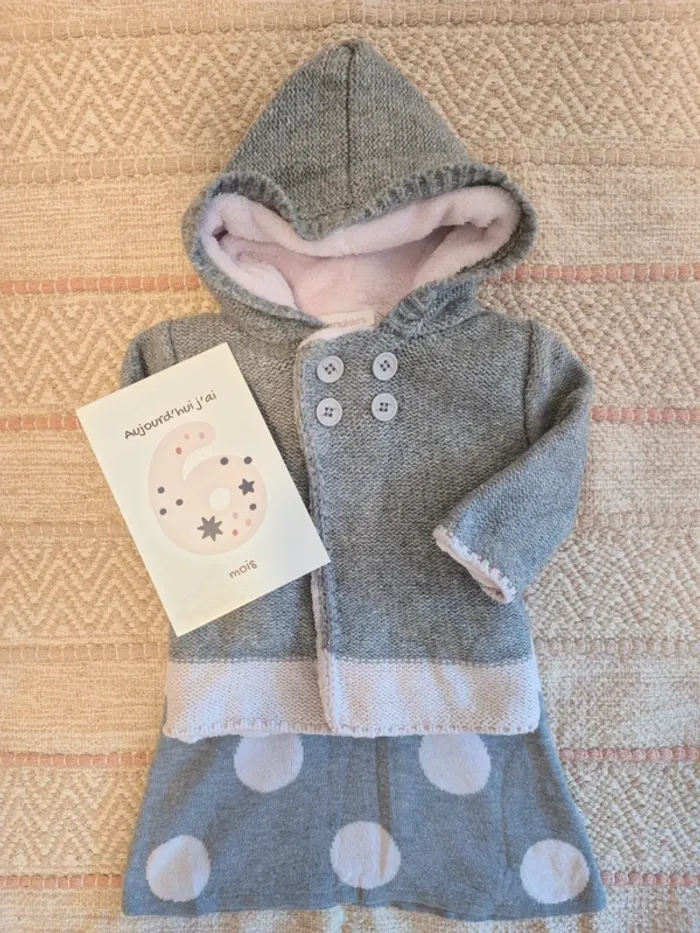 Ensemble robe pull et veste fourrée pilou-pilou Noukie's 6 mois
