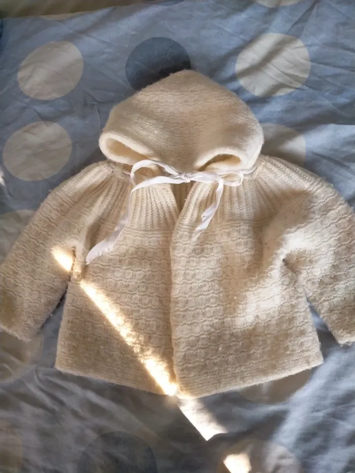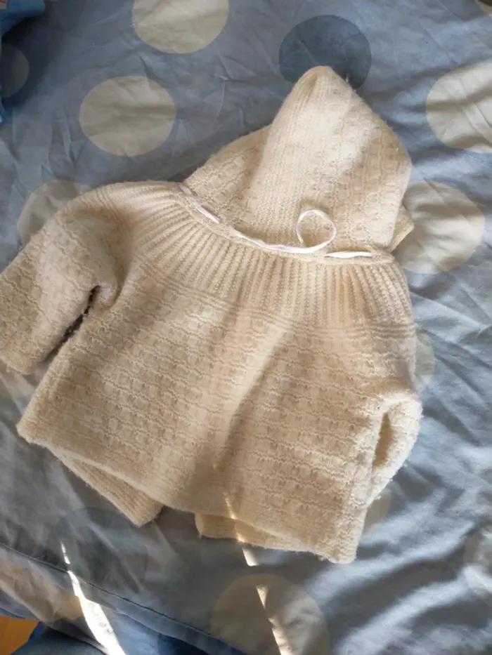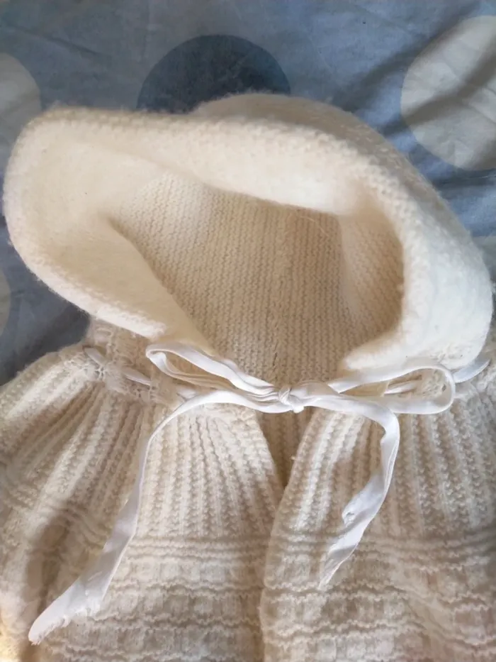 Fermeture par ruban. Pas d'étiquette, fait main. Coresponds à un 12 mois environ