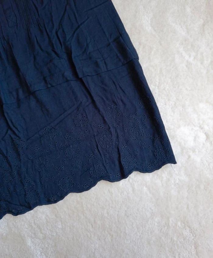 Très bon état. Robe légère, agréable à porter. Avec borderie sur le bas. Largeur épaules : 40 cm. Longueur robe : 84 cm.