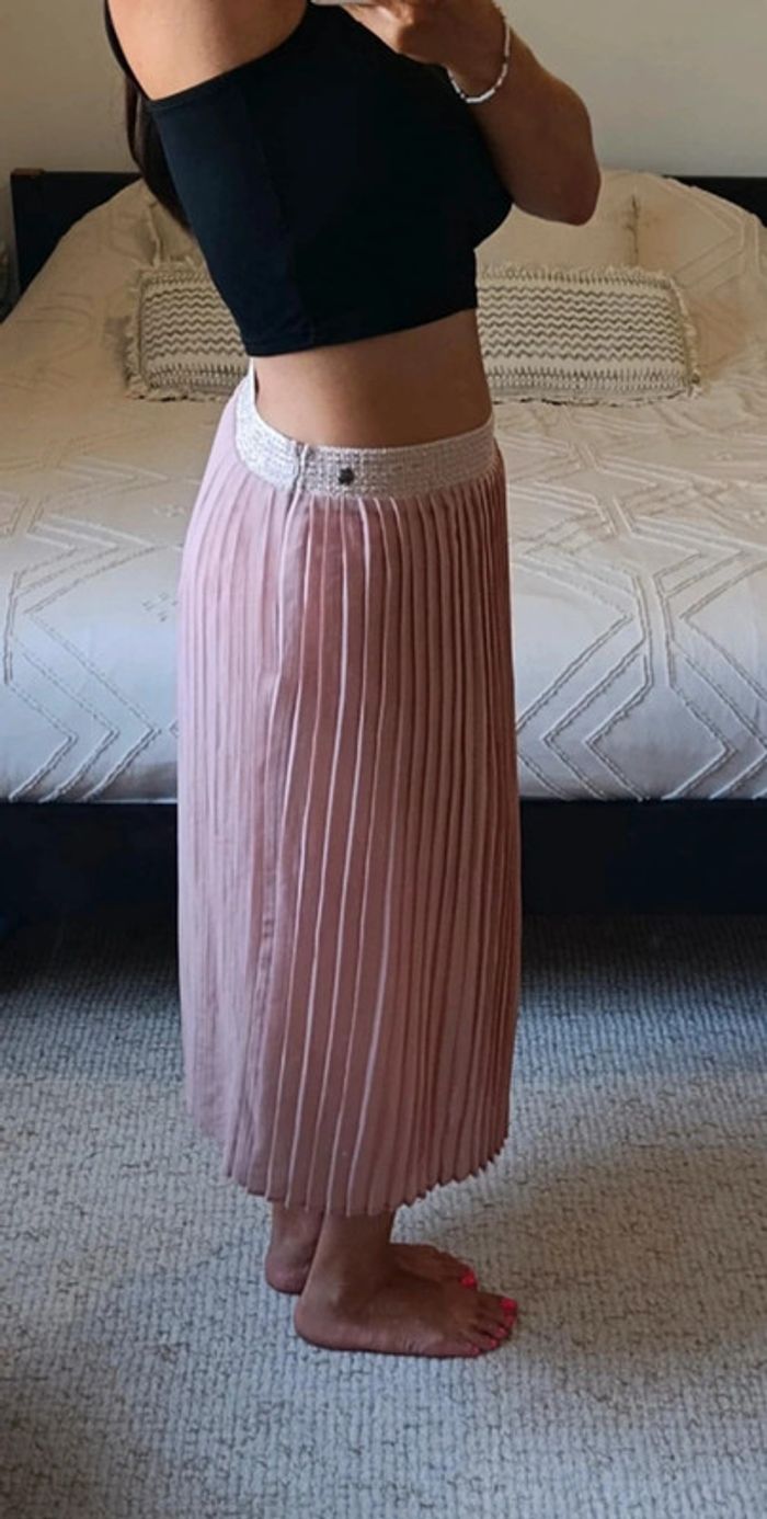 Magnifique jupe plissée Garcia S vieux rose taille élastique - photo numéro 5