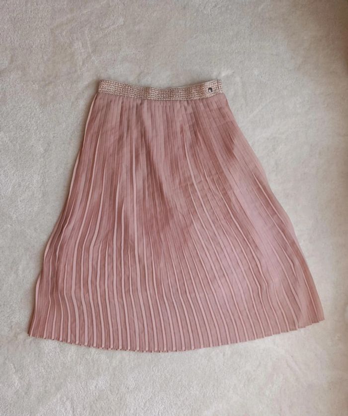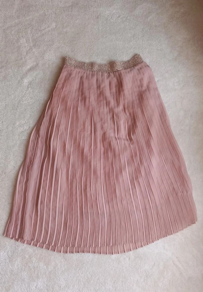 Magnifique jupe plissée Garcia S vieux rose taille élastique - photo numéro 1