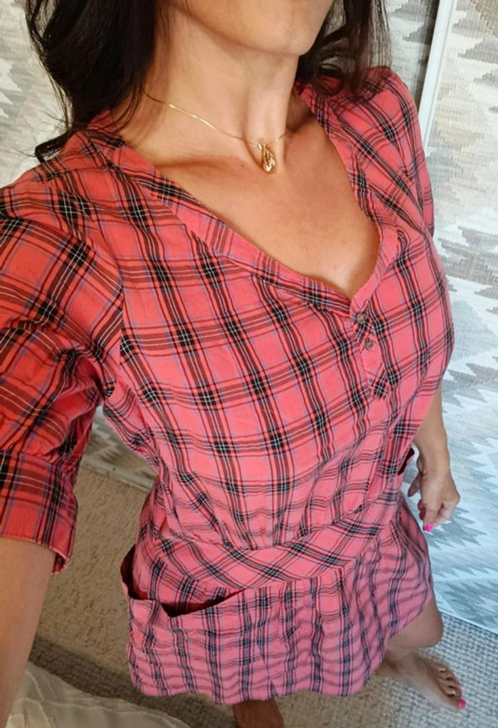 Robe d'été vichy à carreaux Comptoir des cotonniers 40 100% coton corail légère - photo numéro 2