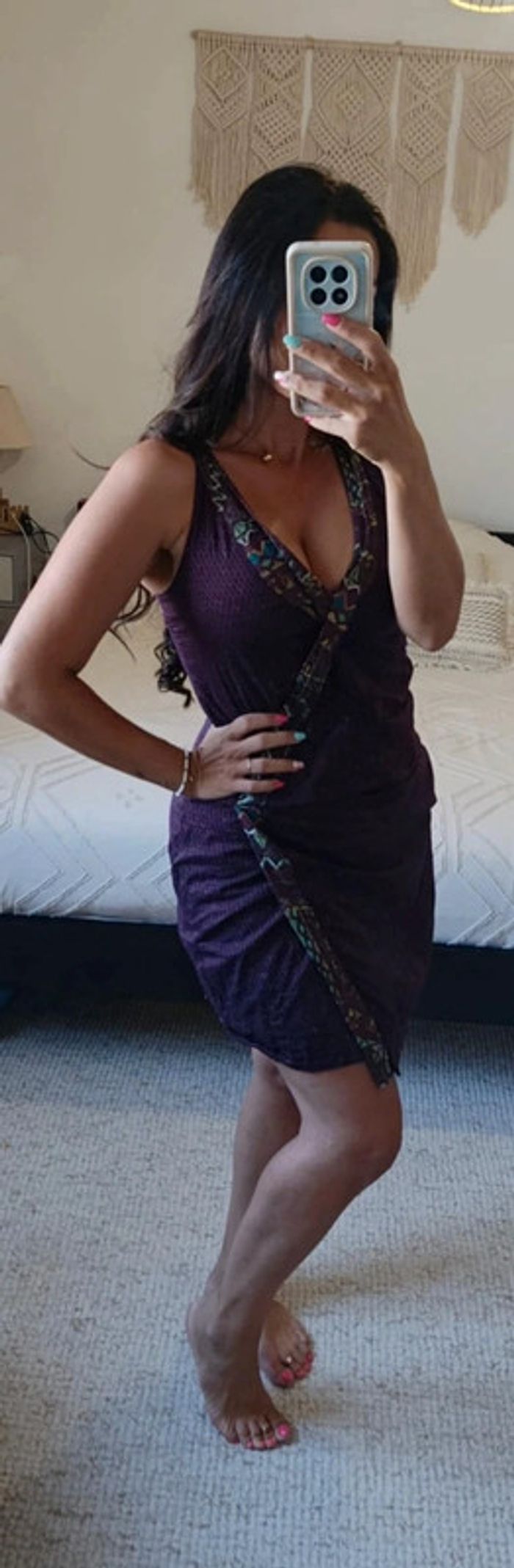 Très bon état. Zip sur le côté. 100% polyester. Doublure. Largeur aisselles : 46 cm. Largeur taille : 44 cm. Longueur robe : 91 cm. 06/07/25