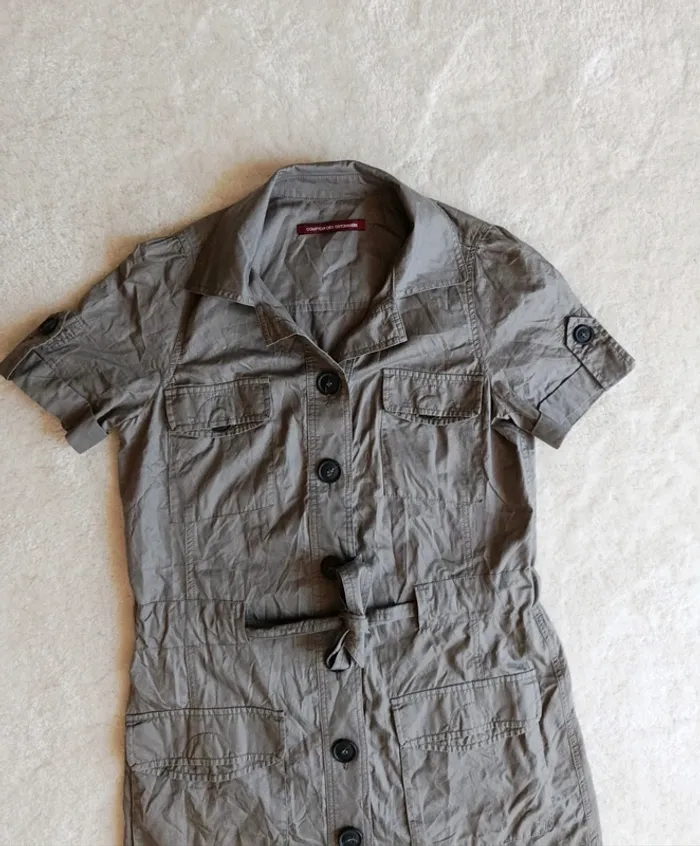Robe chemise Comptoir des cotonniers gris 36 avec ceinture et gros boutons modèle Gigne 100% coton - photo numéro 1