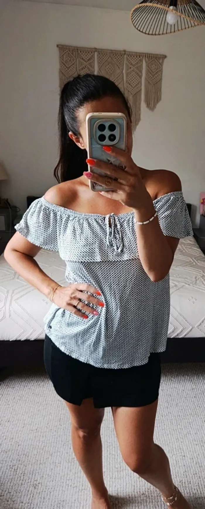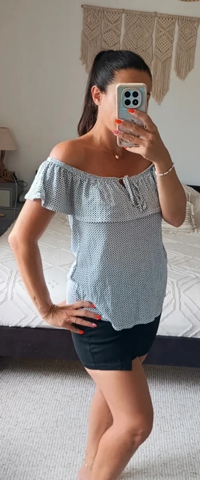 Top épaules dénudées Bonobo S blanc et bleu marine modal et coton
