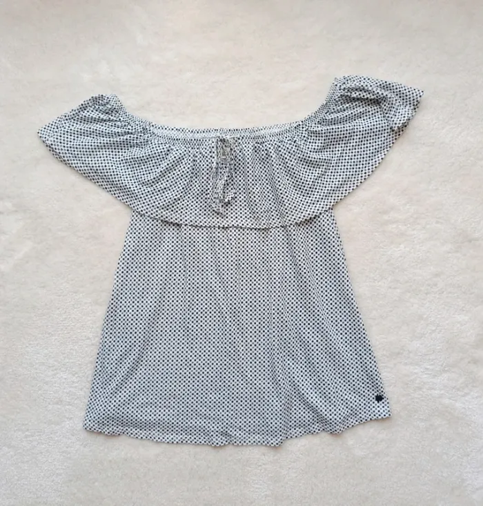 Top épaules dénudées Bonobo S blanc et bleu marine modal et coton - photo numéro 1