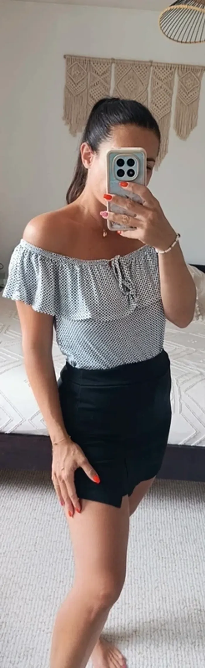 Top épaules dénudées Bonobo S blanc et bleu marine modal et coton - photo numéro 9