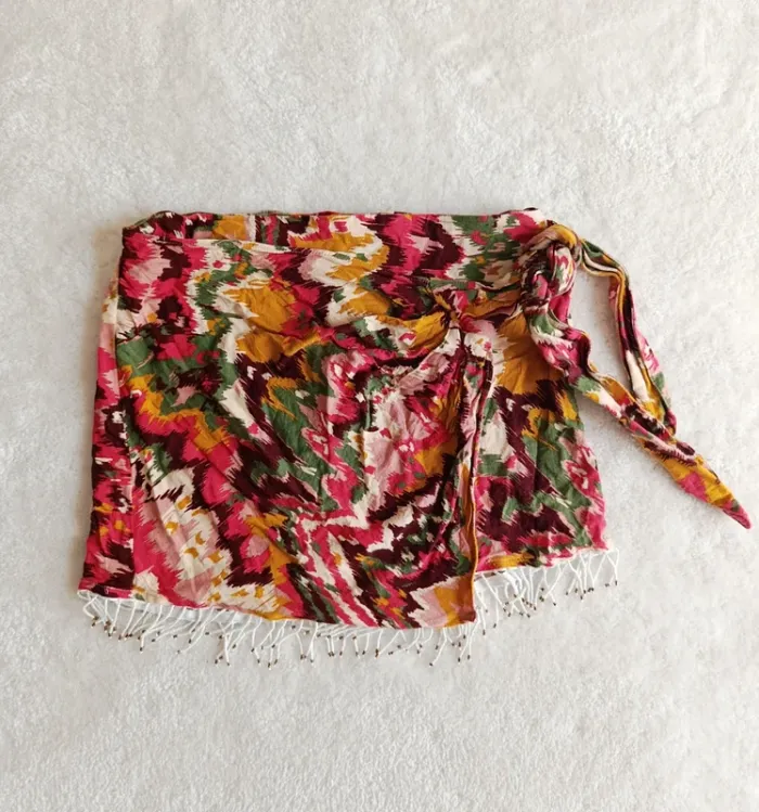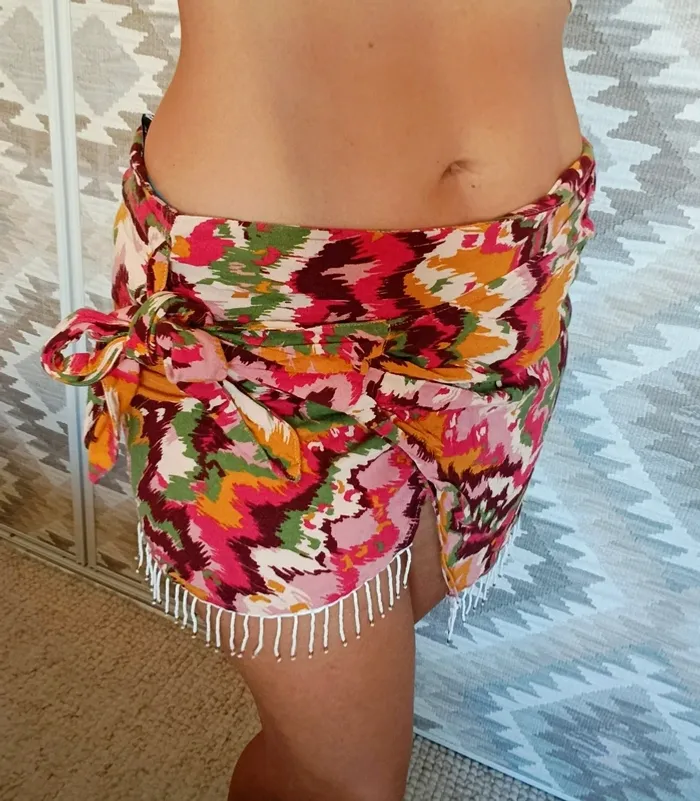 Mini jupe été Zara M croisée multicolore franges en perles - photo numéro 1