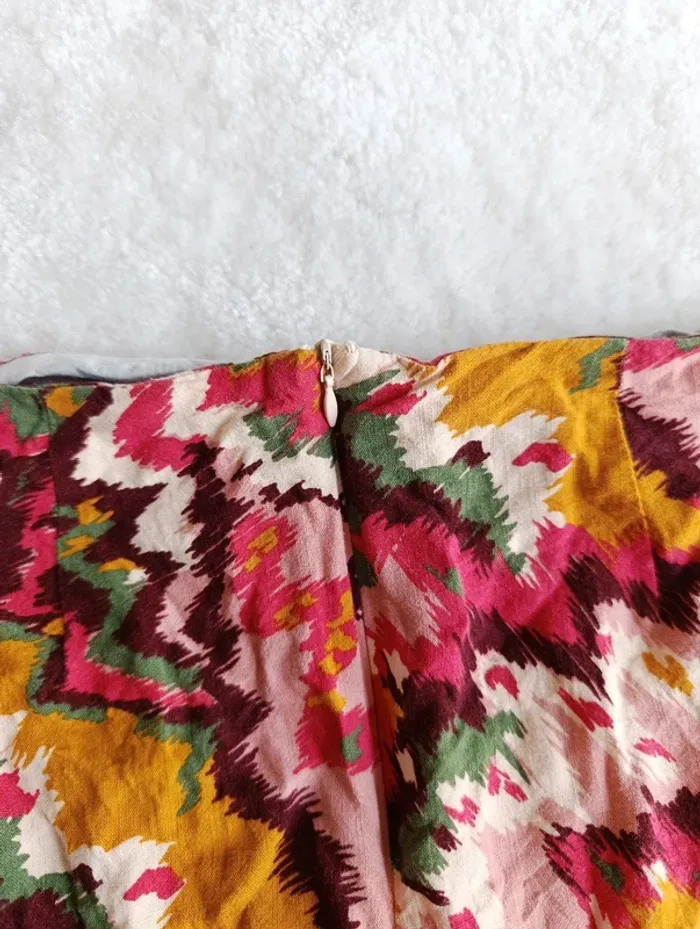 Très bon état. 100% viscose. Largeur taille : 39 cm. Longueur jupe : 35 cm. 03/08/25