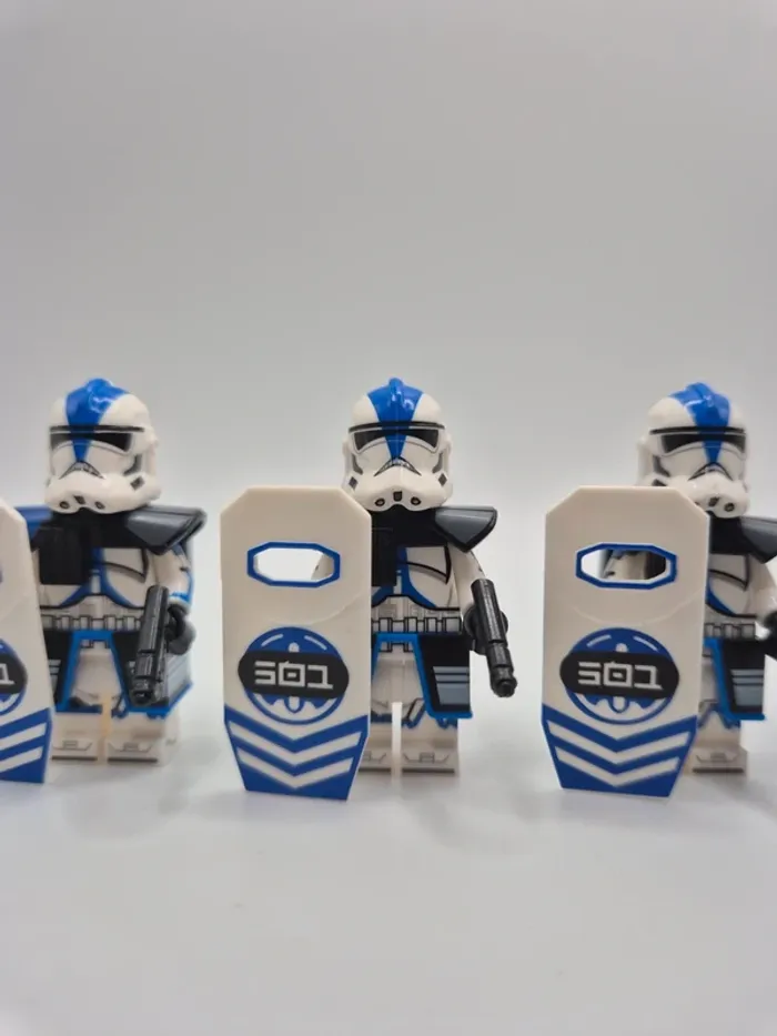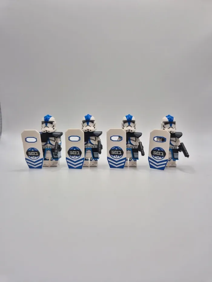 Figurines type lego 4 clones de la 501ème avec boucliers star wars