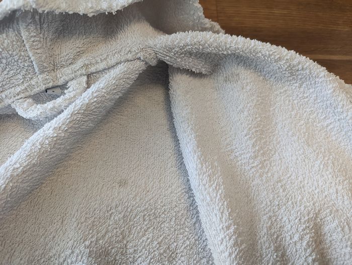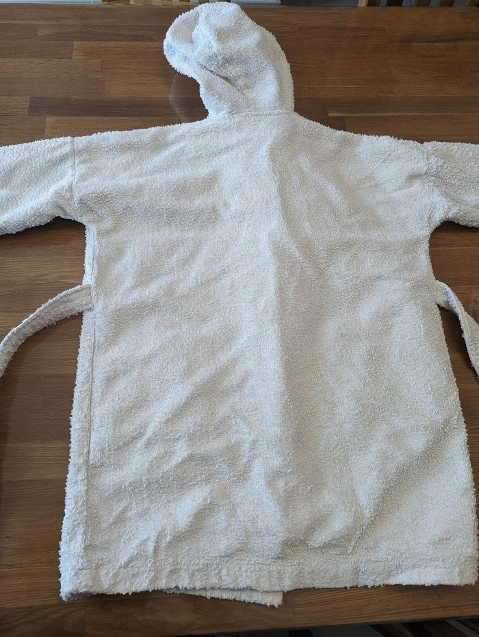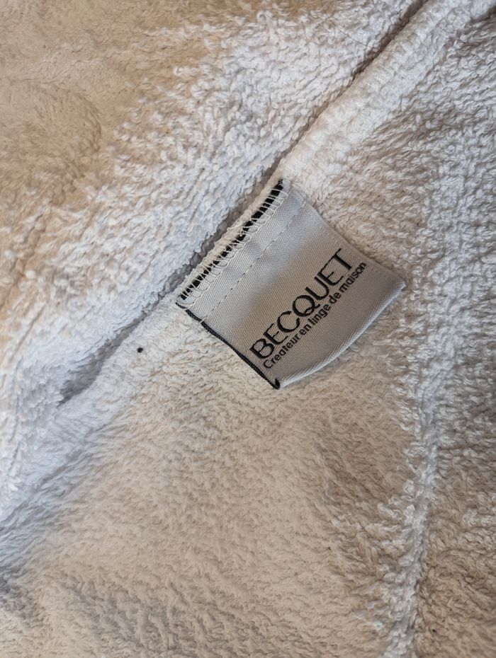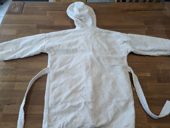 Peignoir unisexe 8 ans, Becquet, très bon état, lavé mais non repassé, donc peut paraître rêche, peu utilisé, présente plusieurs tâches, d'où le prix !