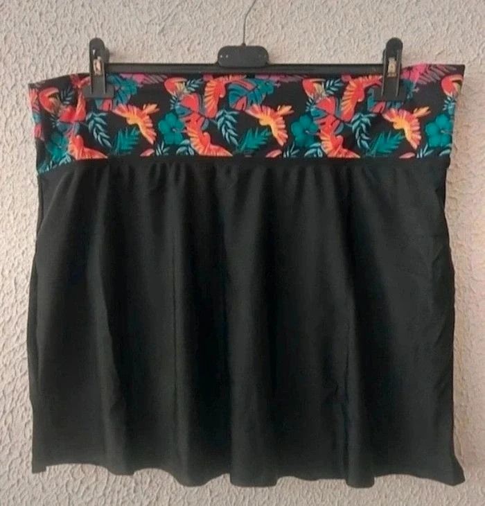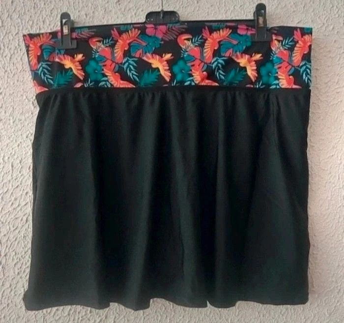 Jupette de bain culotte intégrée • Tendance graphique colorée • Large ceinture rabattable pour couvrir le ventre selon ses envies • Renfort ventral en tulle gainant pour un effet ventre plat • Culotte intégrée • Fente sur les côté pour plus d'aisance • Finitions double aiguilles à la base évasée Composition : • 80% polyamide, 20% élasthanne • Doublure tulle 90% polyamide, 10% élasthanne Taille : 52 Coloris : noir Prix : 14€ Neuf jamais porté #sisterkayafemmet52 #sisterkayamaillotdebain Réf : c.bi +1