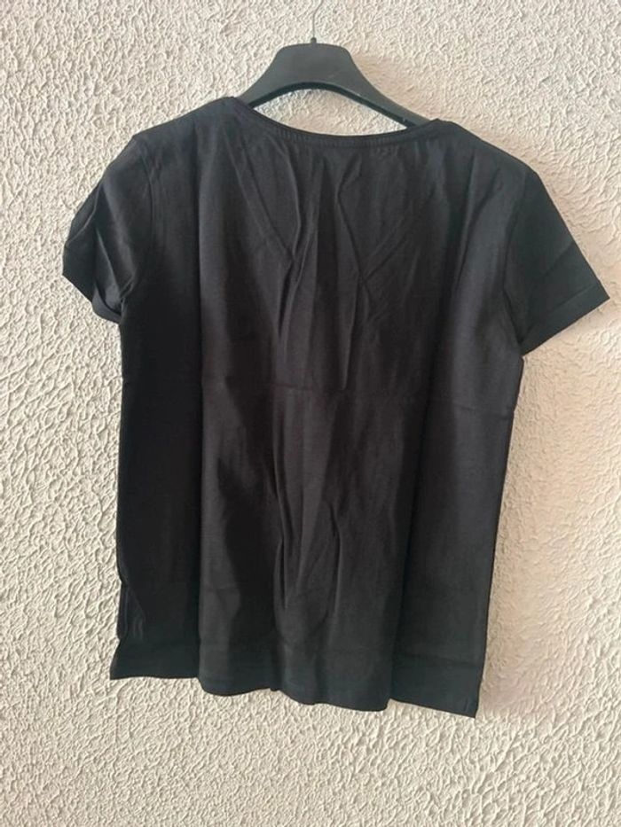 Col V légèrement arrondi Manches courtes Imprimé sur le devant Base arrondie 100% coton Taille S Prix : 16€ Neuf jamais porté #sisterkayafemmet36 Réf : b.hg
