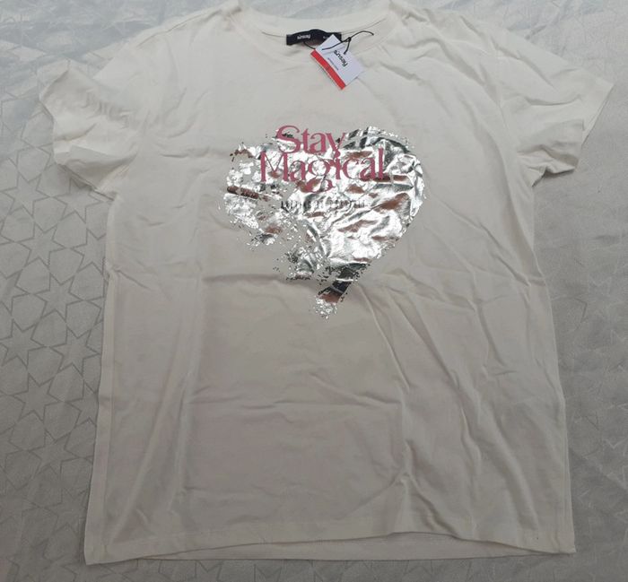 Tee-shirt manches courtes Col rond Imprimé décoratif sur le devant Composition 100% coton Taille : S Coloris : creme/beige Prix : 7€ Neuf jamais porté #sisterkayafemmet36 Réf : à.dd +1