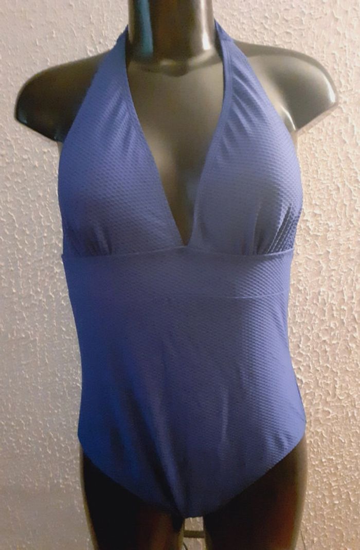 Maillot de bain 1 pièce. Décolleté foulard - Maille texturée effet "nid d'abeille" - Bonnets doublés avec coques amovibles pour sublimer la poitrine - Découpe sous poitrine, soulignée de fronces - Bretelles à nouer au cou pour un dos nu glamour - Renfort gainant devant, secret de beauté pour un ventre plat Composition : - 82% polyamide, 18% élasthanne - Doublure devant 85% polyamide, 15% élasthanne - Bonnets doublés 100% polyester - Fond doublé de maille Taille : 38 Coloris : bleu Prix 12€ Neuf jamais porté #sisterkayafemmet38 #sisterkayamaillotdebain Réf : b.0b +1